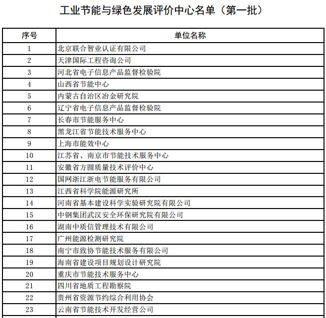 工業(yè)節(jié)能與綠色發(fā)展評價中心名單