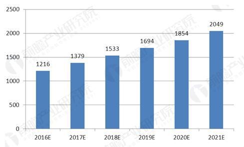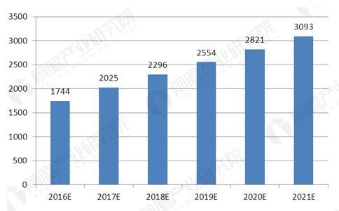 2016-2021年中國合同能源管理行業投資規模預測圖(單位:億元)