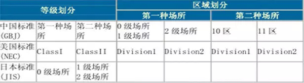 中國、美國、日本危險(xiǎn)區(qū)域劃分對照