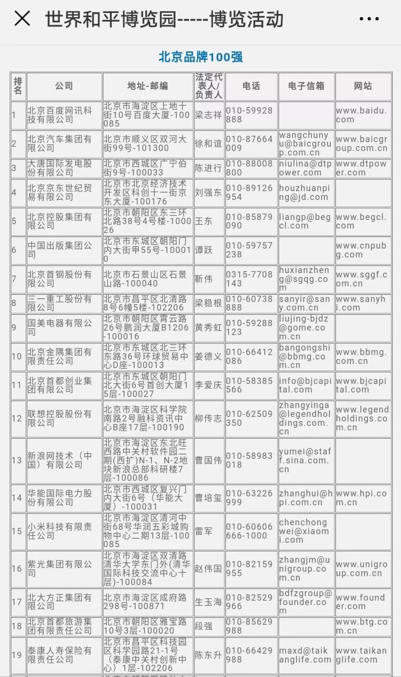 我們可以來圍觀一下北京品牌百強上榜名單: