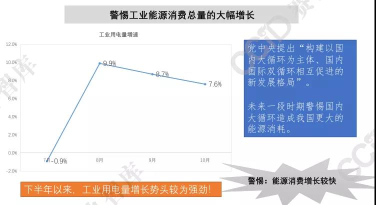 2020年,我國工業能源消費呈現"前低后高"走勢,8、 9、10月份工業用電量增速均超過5%,處于近年來較高水平。