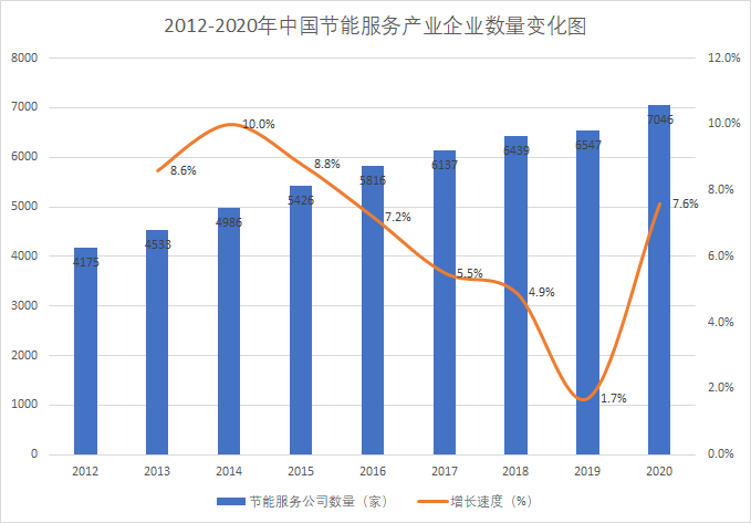 2012-2020年,全國從事節能服務業務的企業數量逐年上升,2020年增速有所提升。