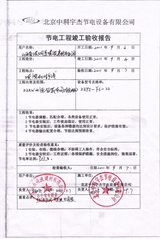 安裝調(diào)試驗收,節(jié)能效率達到30.7%,投資回報期一年半,按質(zhì)保十年計算,此項節(jié)能工程能為山西洪洞縣曉波建材有限公司帶來四百多萬人民幣的直接經(jīng)濟效益。